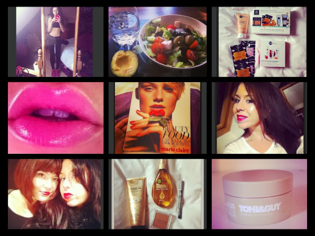 granola, Mia cat sleeping, Mum’s chocolate birthday cake, gym time, new Nuxe beauty kit, selfie, Primark booties,